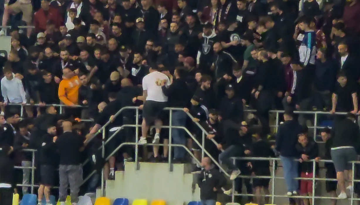 Fanii Rapidului s-au luat la bătaie între ei la derby-ul cu Dinamo. Jandarmii, chemați de urgență în peluză