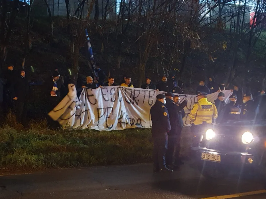 Fanii Universității Craiova, protest înaintea meciului cu FC Voluntari. „Tarife de escorte ați pus!” Ce s-a întâmplat la stadionul din Ilfov | FOTO