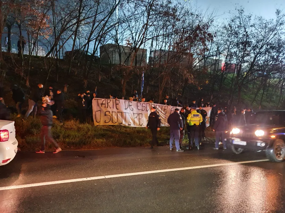 Fanii Universității Craiova, protest înaintea meciului cu FC Voluntari. „Tarife de escorte ați pus!” Ce s-a întâmplat la stadionul din Ilfov | FOTO