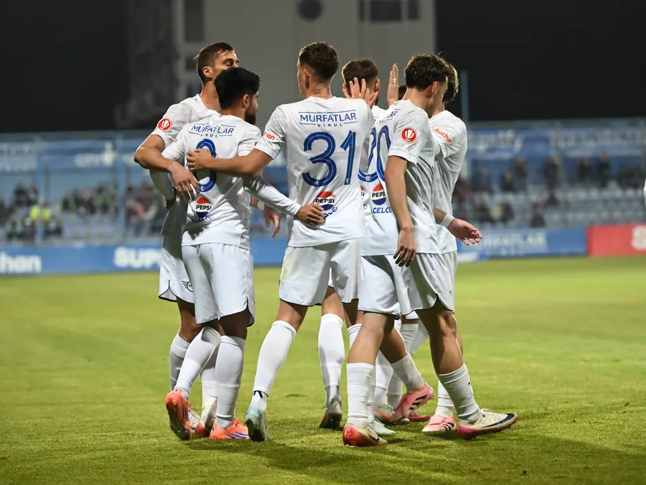 Bucurie a fotbalistilor constanteni dupa un gol marcat de catre Ionuț Daniel Vână in meciul de fotbal dintre Farul Constanta si FK Csikszereda Miercurea Ciuc, contand pentru Superliga Superbet, desfasurat pe Stadionul central al Academiei Gheorghe Hagi din Ovidiu, luni 3 noiembrie 2025. © FOTO:Razvan Pasarica/SPORT PICTURES