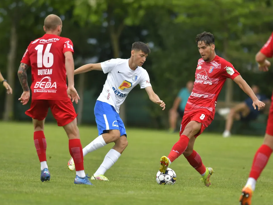 Adrian Mazilu si Marco Alexandru Dulca in meciul amical de fotbal dintre Farul Constanta si Chindia Targoviste, desfasurat la Baza Campo Verde din Ghimbav, sambata 2 iulie 2022. © FOTO:Razvan Pasarica/SPORT PICTURES
