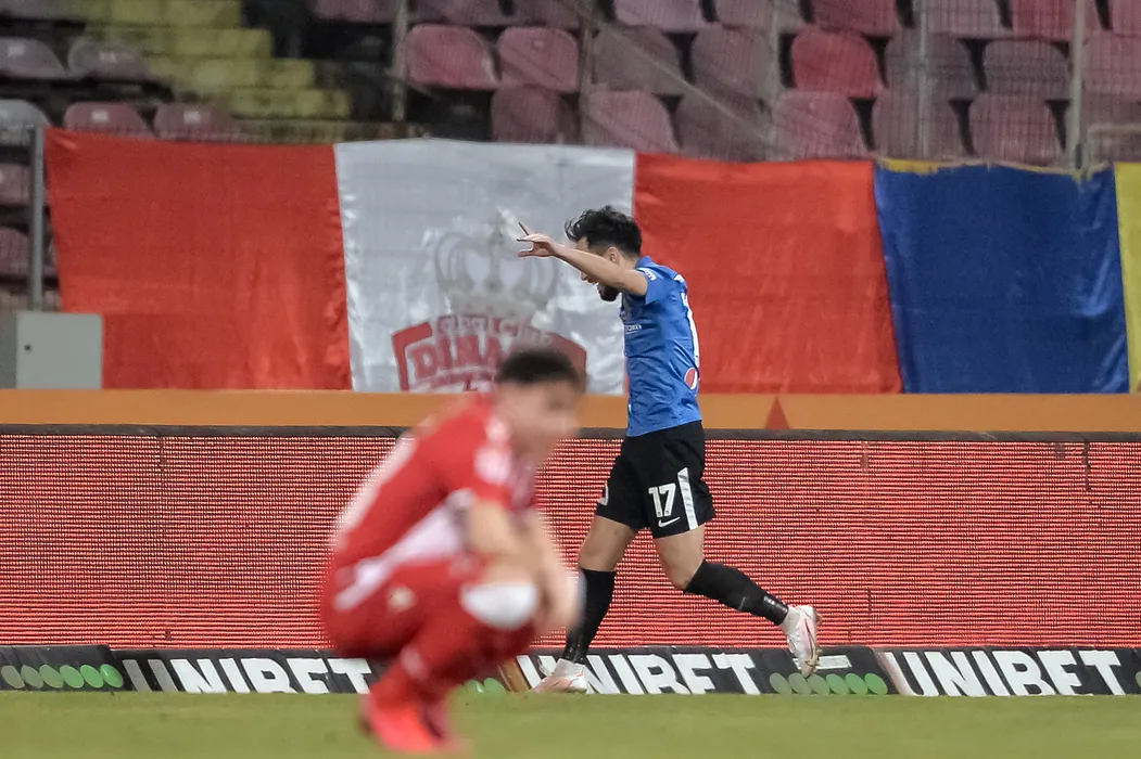 Echipele Dinamo Bucuresti si Viitorul Constanta (echipament albastru-negru) s-au intalnit intr-o partida disputata in etapa 25 din Liga1 la fotbal, vineri 26 februarie 2021, pe stadionul Dinamo din Bucuresti. ALEXANDRU DOBRE / MEDIAFAX FOTO