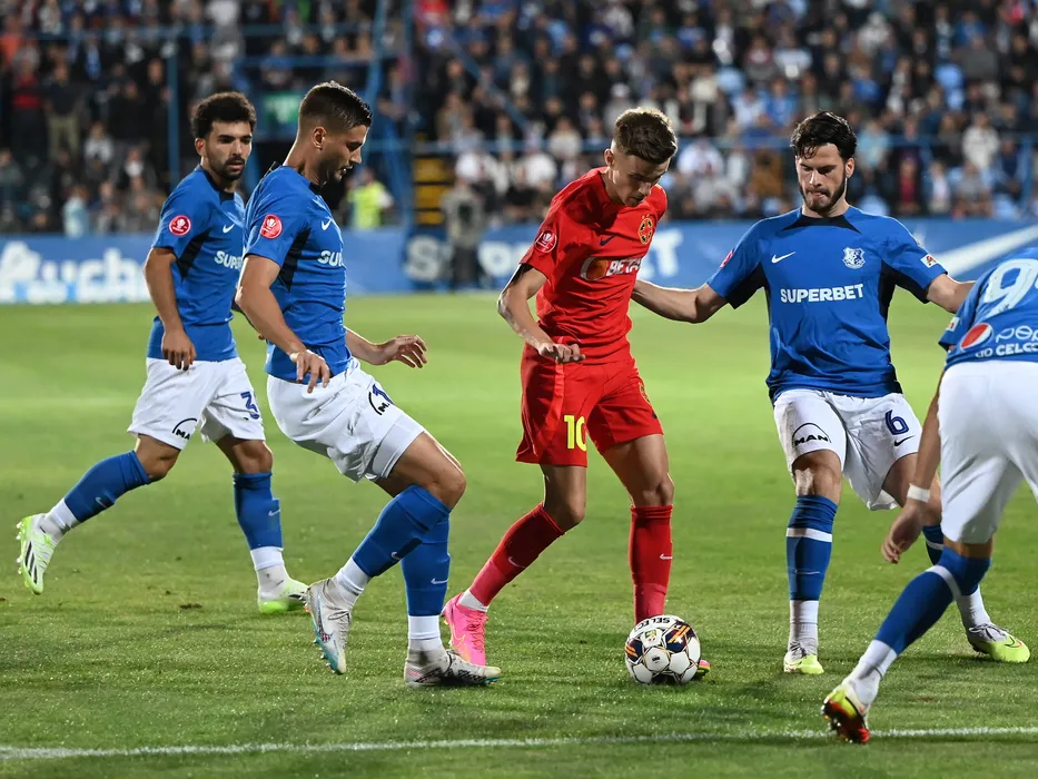 Narek Grigoryan, Dragos Ionut Nedelcu, Octavian George Popescu si Tudor Cristian Baluta in meciul de fotbal dintre Farul Constanta si FCSB, contand pentru Superliga Superbet, desfasurat pe Stadionul central al Academiei Gheorghe Hagi din Ovidiu, duminica 17 septembrie 2023. © FOTO:Razvan Pasarica/SPORT PICTURES