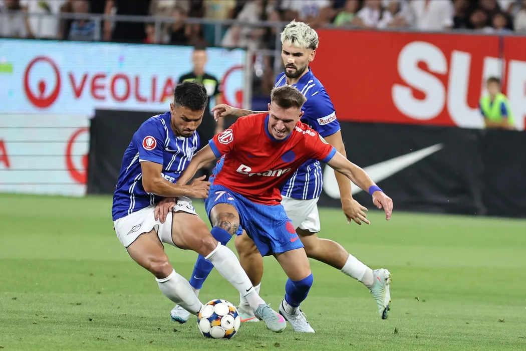 Cristian George Ganea, Andrei Cosmin Gheorghita si Diogo Sa Ramalho in meciul dintre FCSB si Farul Constanta, contand pentru Superliga Superbet, desfasurat pe Stadionul Steaua-Ghencea din Bucuresti, sambata 26 iulie 2025. © FOTO:Gheorghe Fluster/SPORT PICTURES