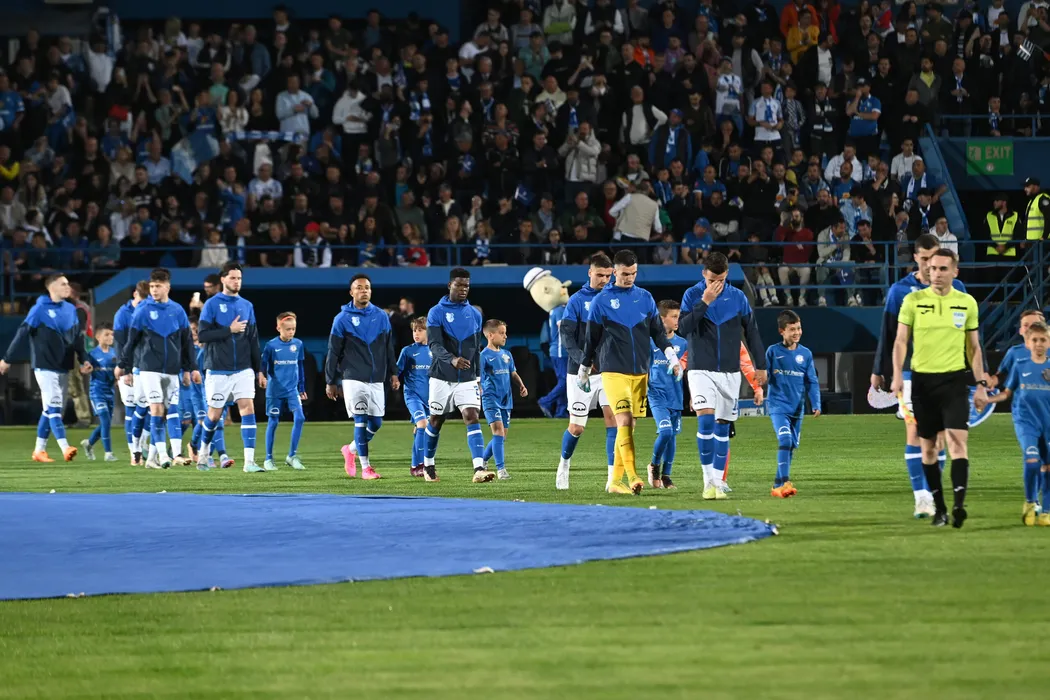 Fotbalistii constanteni la startul meciului de fotbal dintre Farul Constanta si FCSB, contand pentru Play-off-ul Superligii Superbet, desfasurat pe Stadionul central al Academiei Gheorghe Hagi din Ovidiu, duminica 21 mai 2023. © FOTO:Razvan Pasarica/SPORT PICTURES