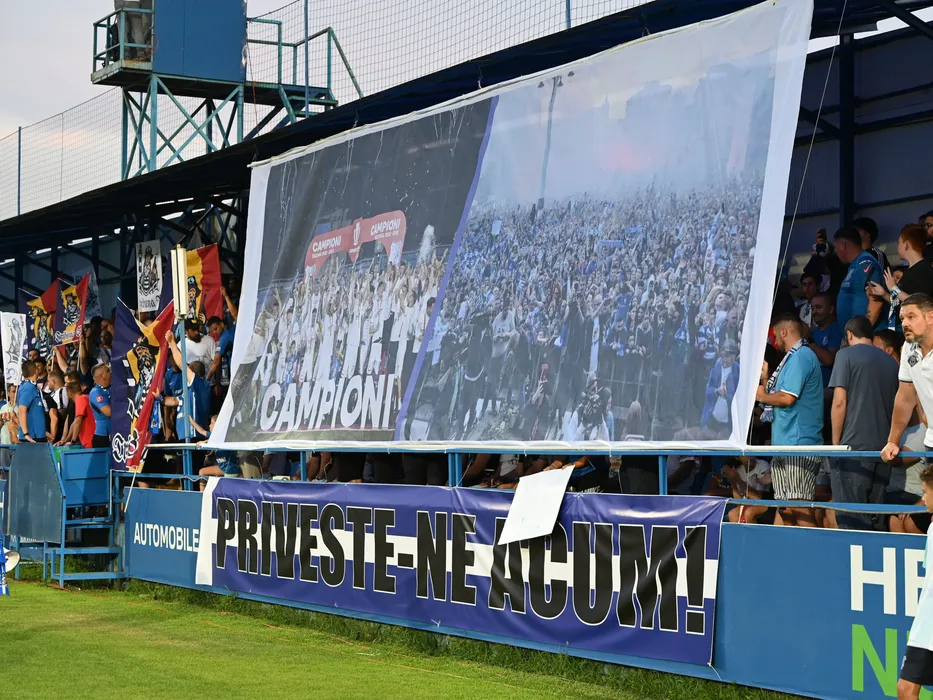 Coregrafie a galeriei constantene afisata la meciul de fotbal dintre Farul Constanta si HJK Helsinki, contand pentru UEFA Europa Conference League, desfasurat pe Stadionul central al Academiei Gheorghe Hagi din Ovidiu, joi 24 august 2023. © FOTO:Razvan Pasarica/SPORT PICTURES