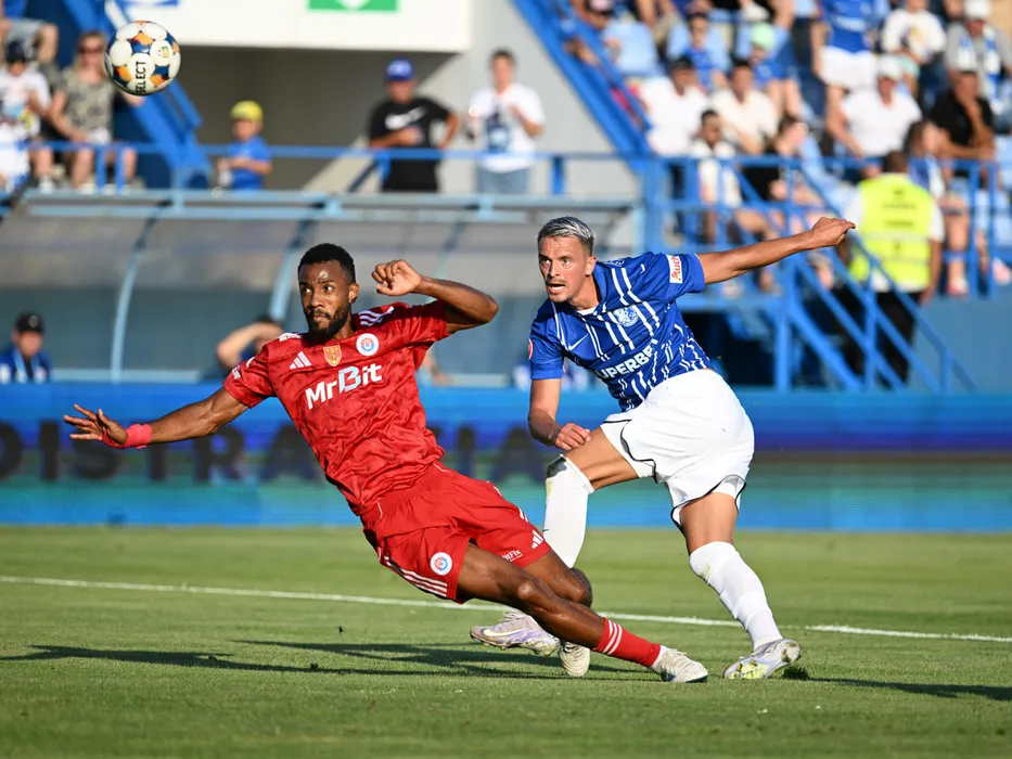 Julian Andres Bonilla Tovar si Jakub Vojtus in meciul de fotbal dintre Farul Constanta si Otelul Galati, contand pentru Superliga Superbet, desfasurat pe Stadionul central al Academiei Gheorghe Hagi din Ovidiu, duminica 20 iulie 2025. © FOTO:Razvan Pasarica/SPORT PICTURES