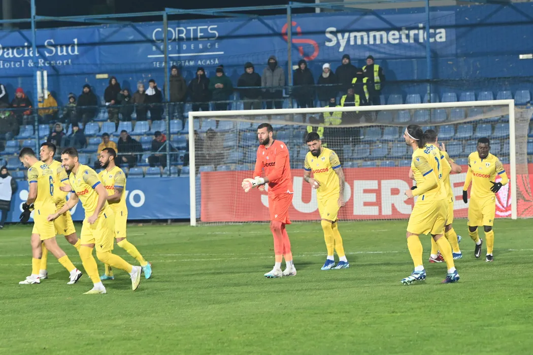 Fotbalistii ploiesteni Nogueira Junior Jefferson, Gheorghe Teodor Grozav, Jair Tavares Silva, Seto Takayuki, Lukas Zima, Marian Fernando Huja si Paul Papp la startul meciului de fotbal dintre Farul Constanta si Petrolul Ploiesti, contand pentru Superliga Superbet, desfasurat pe Stadionul central al Academiei Gheorghe Hagi din Ovidiu, duminica 10 decembrie 2023. © FOTO:Razvan Pasarica/SPORT PICTURES