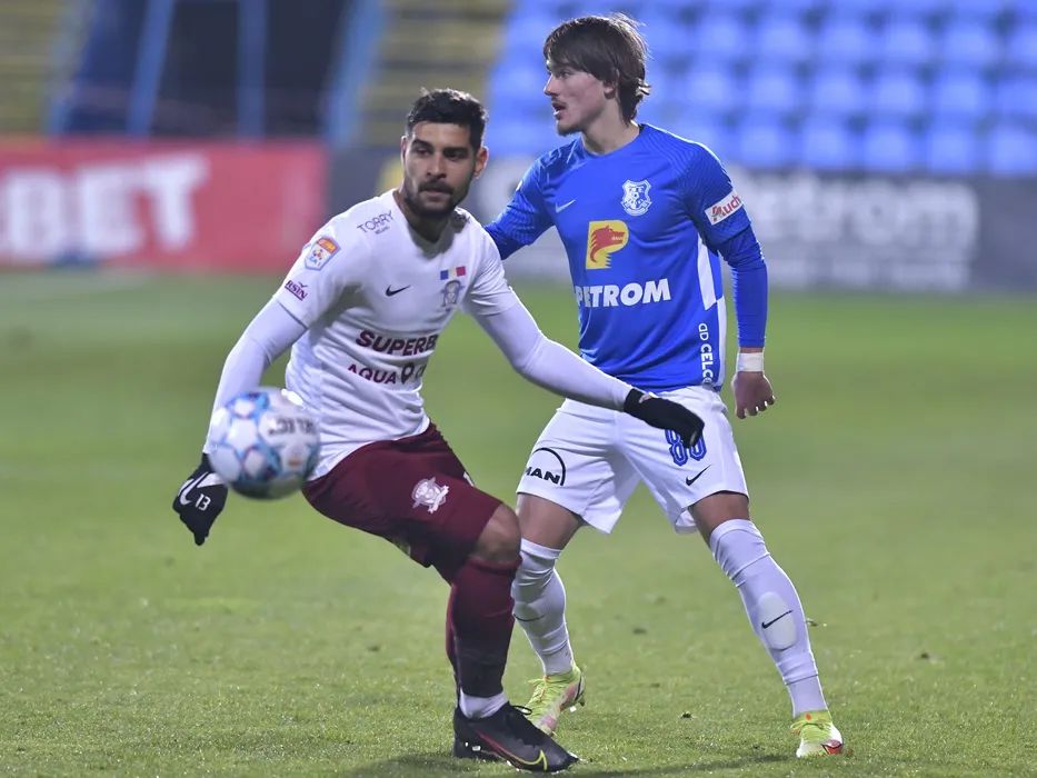 Lucian Petre Goge si Alexi Paul Pitu in meciul de fotbal dintre Farul Constanta si Rapid Bucuresti, contand pentru Liga 1 Casa Pariurilor, desfasurat pe Stadionul central al Academiei Gheorghe Hagi din Ovidiu, sambata 4 decembrie 2021. © FOTO:Razvan Pasarica/SPORT PICTURES