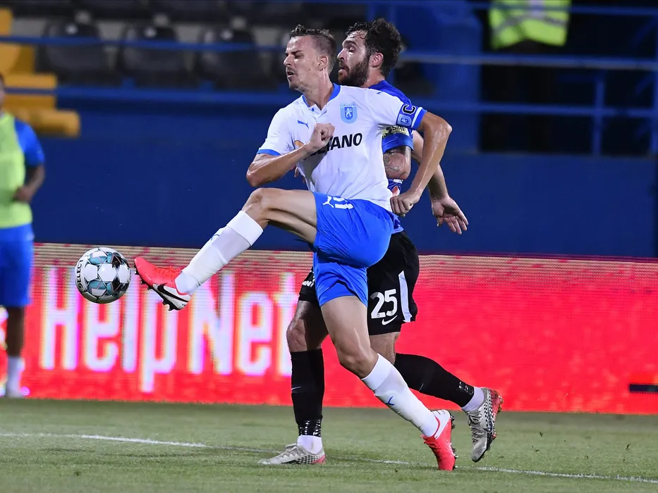 Nicusor Bancu si Aurelian Ionut Chitu in meciul de fotbal dintre FC Viitorul Constanta si Universitatea Craiova, contand pentru Liga 1 Casa Pariurilor, desfasurat fara spectatori pe Stadionul Central al Academiei Gheorghe Hagi din Ovidiu, luni 14 septembrie 2020. © FOTO:Razvan Pasarica/SPORT PICTURES