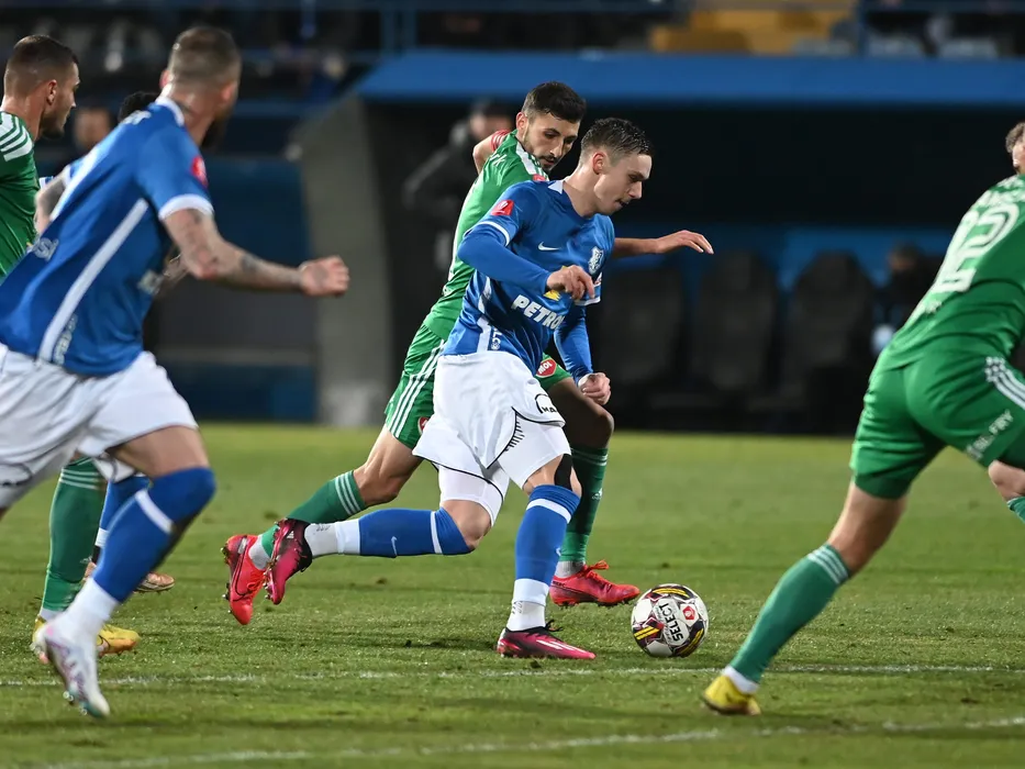 Nicolae Ionut Paun si Louis Munteanu in meciul de fotbal dintre Farul Constanta si Sepsi OSK Sfantu Gheorghe, contand pentru Superliga Superbet, desfasurat pe Stadionul central al Academiei Gheorghe Hagi din Ovidiu, marti 28 februarie 2023. © FOTO:Razvan Pasarica/SPORT PICTURES