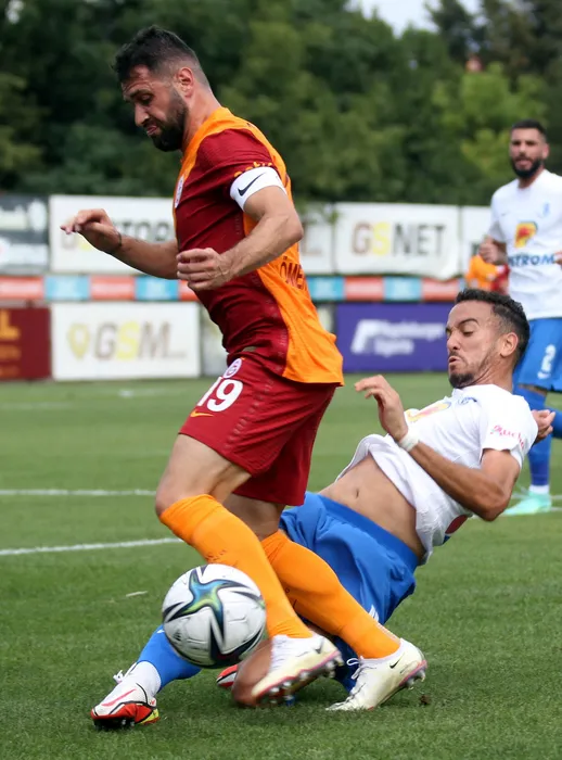 ISTANBUL, TURKEY - SEPTEMBER 05: Omer Bayram (L) of Galatasaray in action against Dussaut Damien (2nd L) of Farul Constanta during a friendly match between Galatasaray and Farul Constanta at Florya Metin Oktay Facilities in Istanbul, Turkey on September 05, 2021. Mehmet Murat Onel / Anadolu Agency/ABACAPRESS.COM