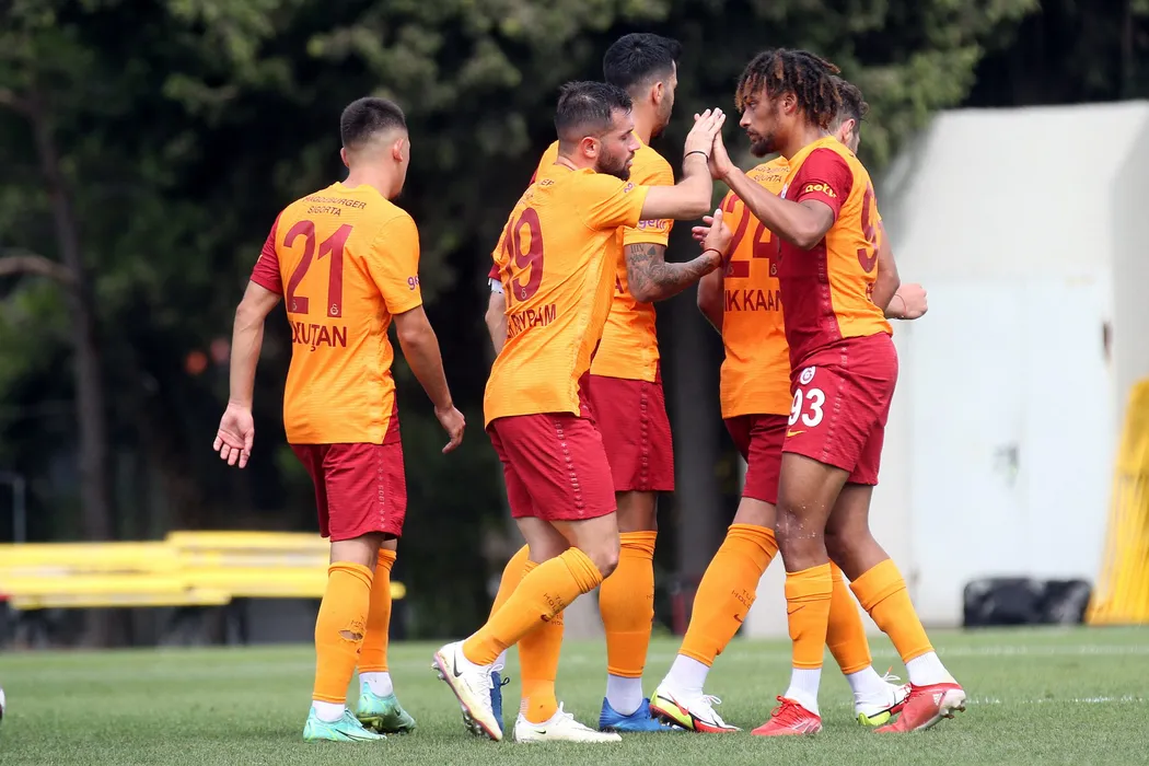 ISTANBUL, TURKEY - SEPTEMBER 05: Isik Kaan Arslan (2nd R) of Galatasaray celebrates with teammates after scoring a goal during a friendly match between Galatasaray and Farul Constanta at Florya Metin Oktay Facilities in Istanbul, Turkey on September 05, 2021. Mehmet Murat Onel / Anadolu Agency/ABACAPRESS.COM
