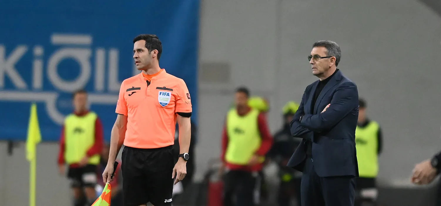 Arbitrul asistent Mircea Mihail Grigoriu alaturi de Eugen Neagoe in meciul de fotbal dintre Universitatea Craiova si Universitatea Cluj, contand pentru Superliga Superbet, desfasurat pe Stadionul Ion Oblemenco din Craiova, sambata 5 noiembrie 2022. © FOTO:Razvan Pasarica/SPORT PICTURES