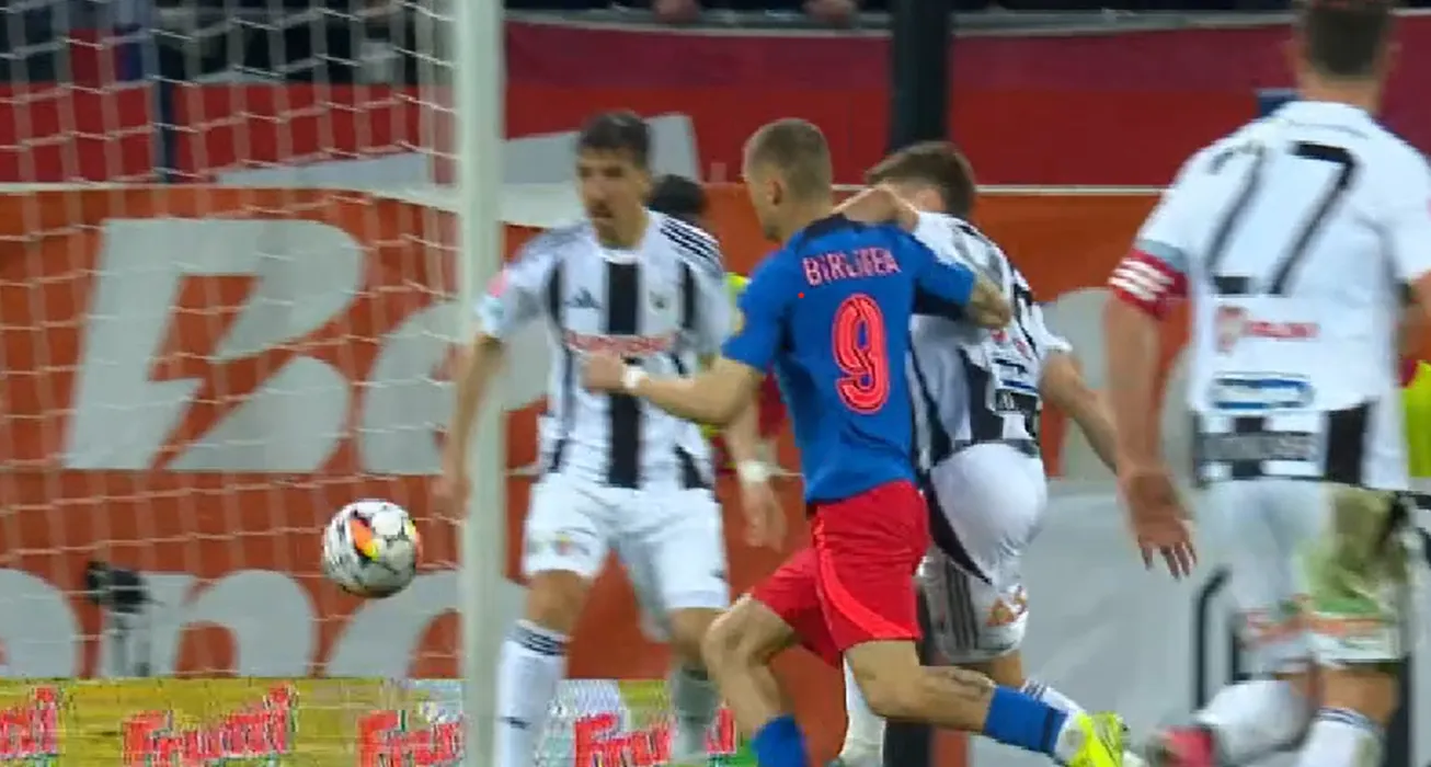 Fază controversată în FCSB – U Cluj. Szabolcs Kovacs a dat penalty pentru că Bîrligea a fost lovit de Simion cu mâna peste față