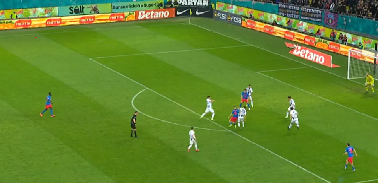 Fază controversată în FCSB – U Cluj. Szabolcs Kovacs a dat penalty pentru că Bîrligea a fost lovit de Simion cu mâna peste față
