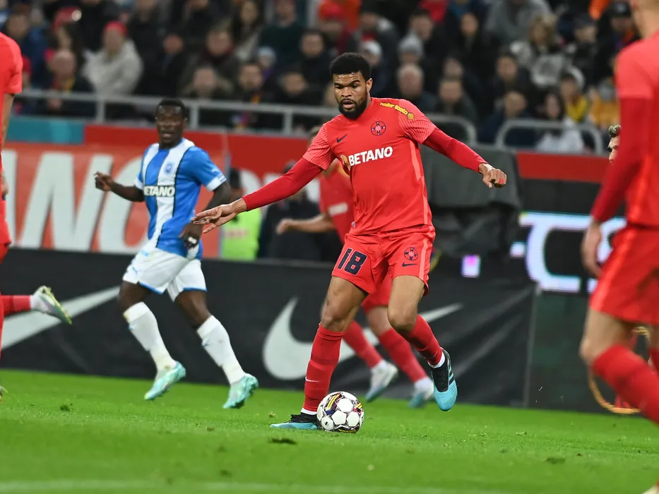 Fază controversată în FCSB – Universitatea Craiova: Basilio Ndong a intervenit haotic, dar VAR-ul l-a salvat de la eliminare. Cum a analizat arbitrul Adrian Cojocaru