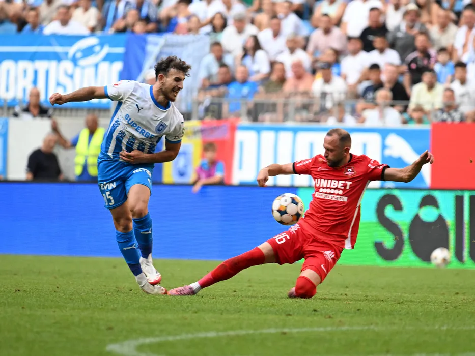 Anzor Mekvabishvili si Silviu Nicolae Balaure in meciul dintre Universitatea Craiova si FC Hermannstadt, contand pentru Superliga Superbet, desfasurat pe Stadionul Ion Oblemenco din Craiova, duminica 10 august 2025. © FOTO:Razvan Pasarica/SPORT PICTURES