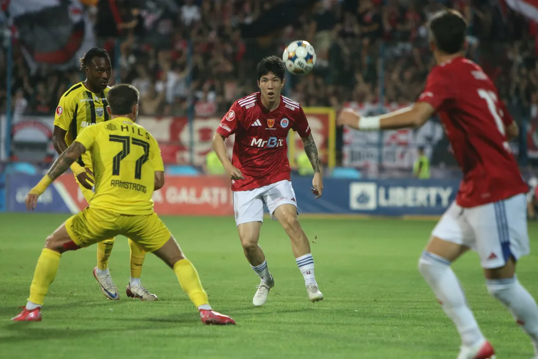Christian Kendji Wagatsuma Ferreira (Kazu) in meciul de fotbal dintre SC Otelul Galati si Dinamo Bucuresti, contand pentru Superliga Superbet, desfasurat pe Stadionul Otelul din Galati, duminica 27 iulie 2025. © FOTO:Valentin Munteanu/SPORT PICTURES