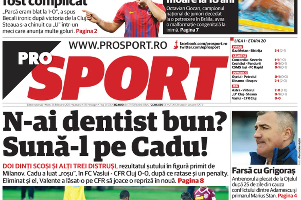 Fază HORROR în Vaslui – CFR!** Cadu a văzut „roșu” direct după ce i-a rupt cinci dinți lui Milanov! Clujenii au jucat o repriză în 9