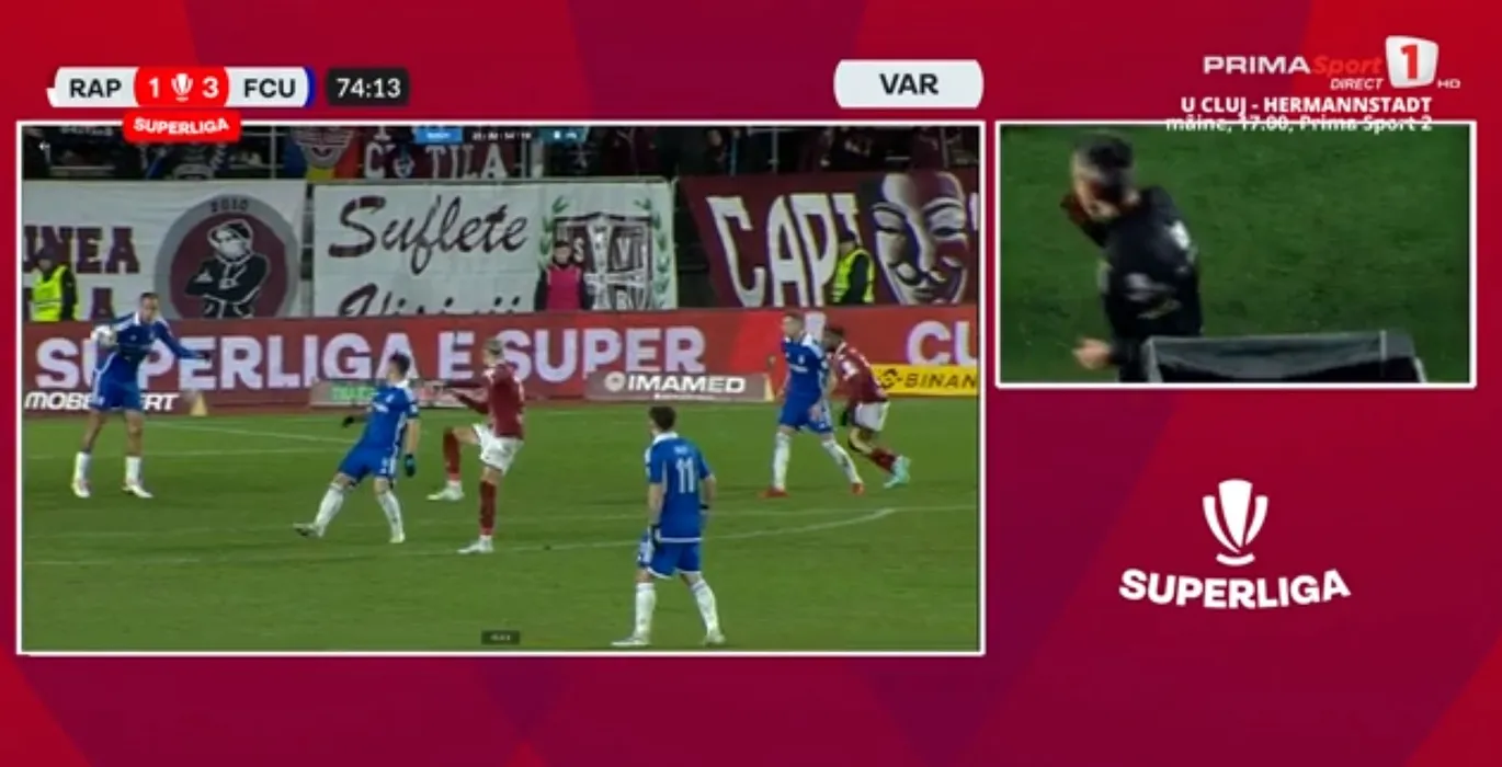 Fază scandaloasă în Rapid – FC U Craiova! Adrian Mititelu a turbat de furie: Feșnic a stat 5 minute la VAR și a dat penalty, după un henț controversat!