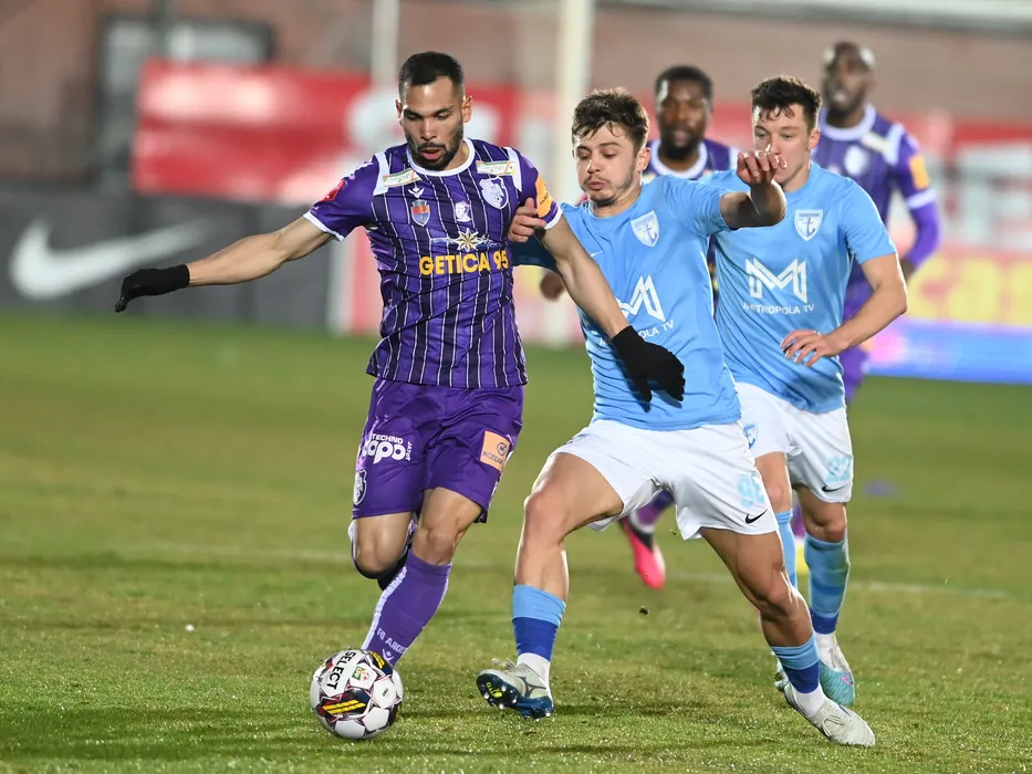 Cesar Daniel Meza Colli, Vadim Rata si Cristian Ionut Costin la meciul de fotbal dintre FC Voluntari si FC Arges, contand pentru Superliga Superbet, desfasurat pe Stadionul Anghel Iordanescu din Voluntari, luni 6 martie 2023. © FOTO:Razvan Pasarica/SPORT PICTURES