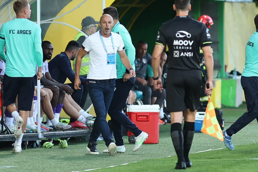Bogdan Ioan Andone reactioneaza in meciul de fotbal dintre FC Arges si FC Universitatea Cluj, contand pentru Superliga Superbet, desfasurat pe Stadionul Orasenesc din Mioveni, sambata 19 septembrie 2025. © FOTO:Gheorghe Fluster/SPORT PICTURES