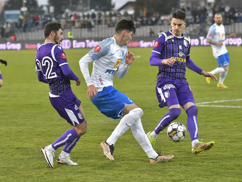Facundo Emanuel Rizzi, Adrian Mazilu si Mario Zebic in meciul de fotbal dintre FC Arges si Farul Constanta, contand pentru Superliga Superbet, desfasurat pe Stadionul Nicolae Dobrin din Pitesti, duminica 12 februarie 2023. © FOTO:Razvan Pasarica/SPORT PICTURES
