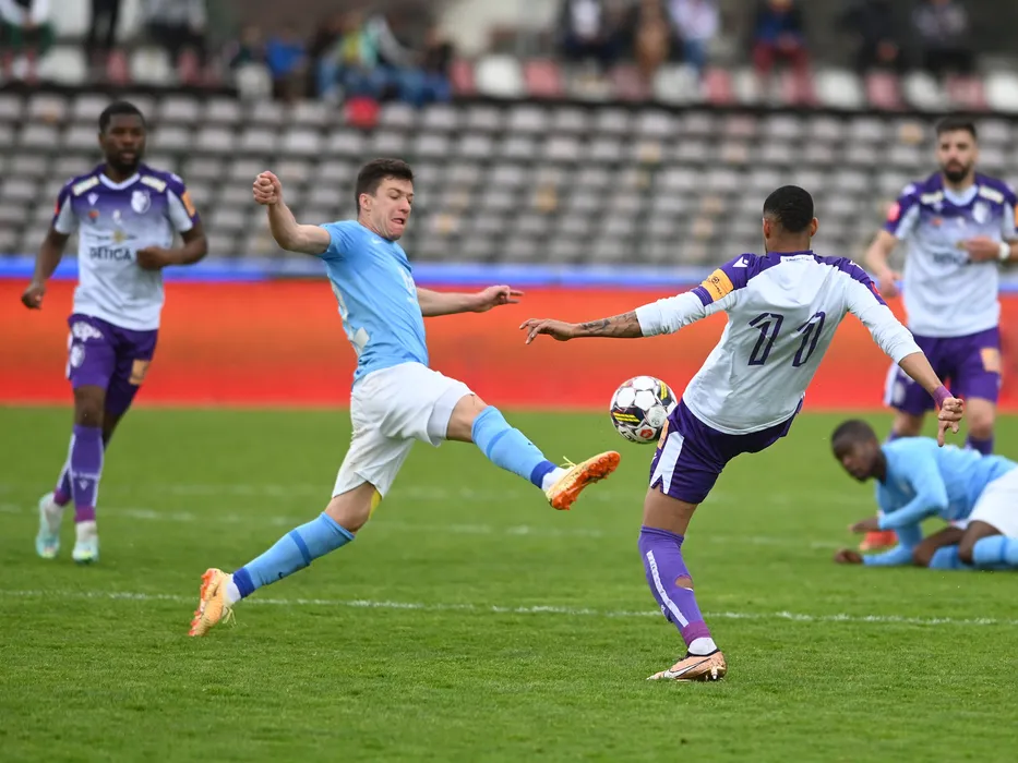 Vadim Rata si Wesley Georges Jobello in meciul de fotbal dintre FC Arges si FC Voluntari, contand pentru Play-out-ul Superligii Superbet, desfasurat pe Stadionul Nicolae Dobrin din Pitesti, duminica 2 aprilie 2023. © FOTO:Razvan Pasarica/SPORT PICTURES