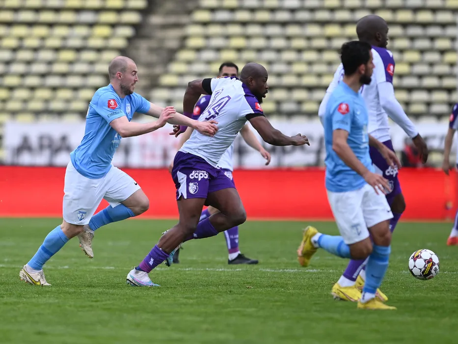 Runar Mar S. Sigurjonsson si Paul Arnold Garita in meciul de fotbal dintre FC Arges si FC Voluntari, contand pentru Play-out-ul Superligii Superbet, desfasurat pe Stadionul Nicolae Dobrin din Pitesti, duminica 2 aprilie 2023. © FOTO:Razvan Pasarica/SPORT PICTURES