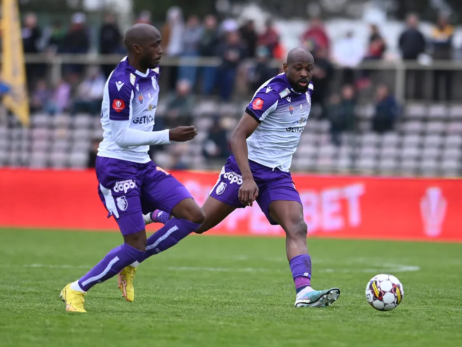 Kevin Brandon Xavier Koubemba si Paul Arnold Garita in meciul de fotbal dintre FC Arges si FC Voluntari, contand pentru Play-out-ul Superligii Superbet, desfasurat pe Stadionul Nicolae Dobrin din Pitesti, duminica 2 aprilie 2023. © FOTO:Razvan Pasarica/SPORT PICTURES