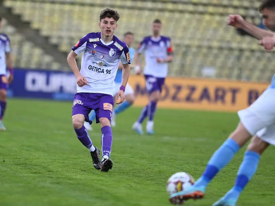 Gino Stefan Oprescu in meciul de fotbal dintre FC Arges si FC Voluntari, contand pentru Play-out-ul Superligii Superbet, desfasurat pe Stadionul Nicolae Dobrin din Pitesti, duminica 2 aprilie 2023. © FOTO:Razvan Pasarica/SPORT PICTURES