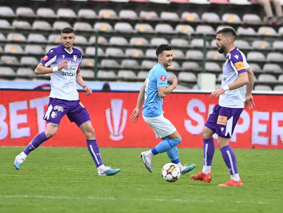 Grigore Ioan Turda si Vitalie Damascan in meciul de fotbal dintre FC Arges si FC Voluntari, contand pentru Play-out-ul Superligii Superbet, desfasurat pe Stadionul Nicolae Dobrin din Pitesti, duminica 2 aprilie 2023. © FOTO:Razvan Pasarica/SPORT PICTURES