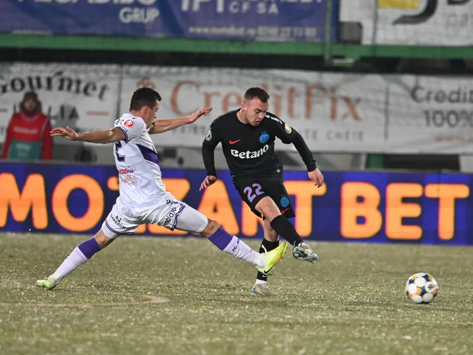 Vadim Rata si Mihai Vlăduț Toma in meciul de fotbal dintre FC Arges si FCSB, contand pentru Superliga Superbet, desfasurat pe Stadionul Orasenesc din Mioveni, vineri 16 ianuarie 2026. © FOTO:Razvan Pasarica/SPORT PICTURES