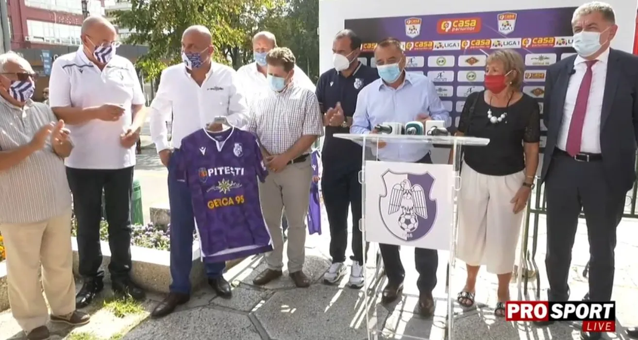 FC Argeș prezintă fanilor noul echipament și autocar. Gica Dobrin, tricou personalizat: „Gicu e cu sufletul lângă noi”! VIDEO
