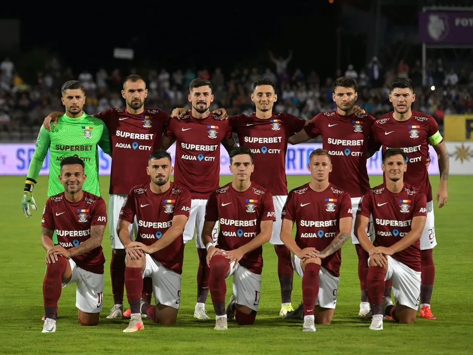 Fotbalistii rapidisti la o fotografie de grup realizata inaintea meciului de fotbal dintre FC Arges si Rapid Bucuresti, contand pentru Liga 1 Casa Pariurilor, desfasurat pe Stadionul Nicolae Dobrin din Pitesti, sambata 7 august 2021. © FOTO:Razvan Pasarica/SPORT PICTURES