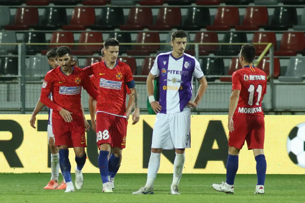 Dennis Man (CS), de la FCSB,reactioneaza dupa ce a inscris ce-l de-al treilea gol in timpul meciului de fotbal contra echipei FC Arges din etapa a IV-a a Ligii 1, disputat pe stadionul Marin Anastasovici din Giurgiu, duminica, 20 septembrie 2020. GEORGE FILIP / MEDIAFAX FOTO