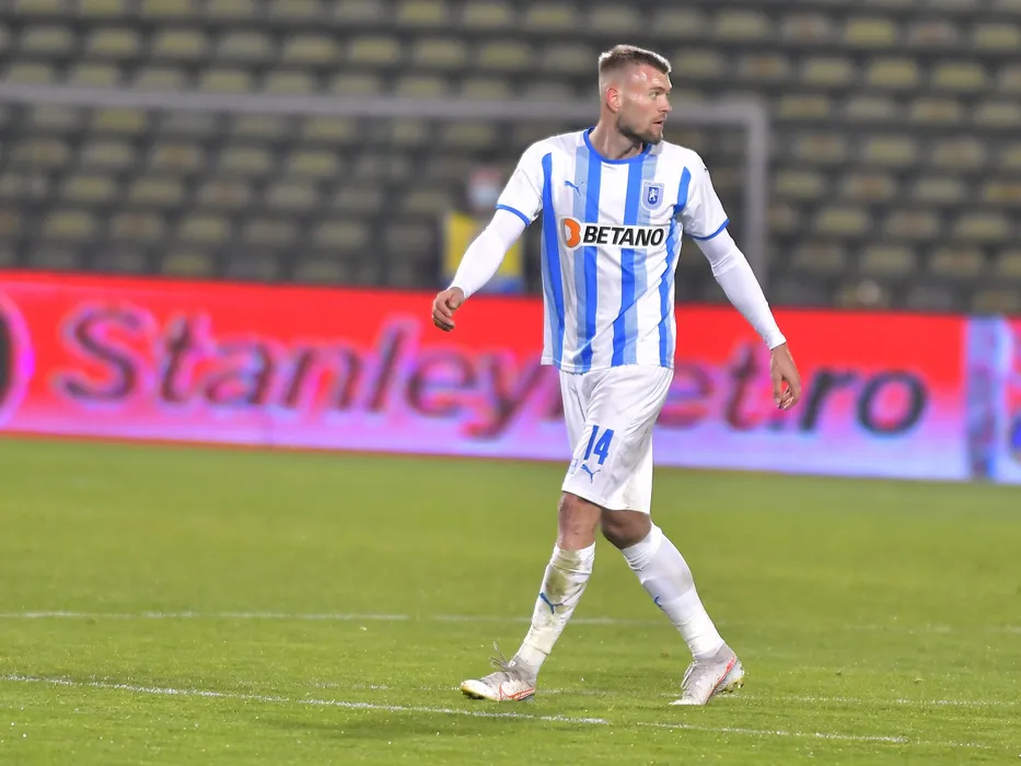 Alexandru Cretu eliminat in meciul de fotbal dintre FC Arges si Universitatea Craiova, contand pentru Liga 1 Casa Pariurilor, desfasurat pe Stadionul Nicolae Dobrin din Pitesti, duminica 21 noiembrie 2021. © FOTO:Razvan Pasarica/SPORT PICTURES