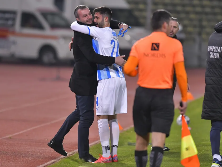 Ante Roguljic se bucura alaturi de Lucian Pretorian dupa un gol marcat in meciul de fotbal dintre FC Arges si Universitatea Craiova, contand pentru Liga 1 Casa Pariurilor, desfasurat pe Stadionul Nicolae Dobrin din Pitesti, duminica 21 noiembrie 2021. © FOTO:Razvan Pasarica/SPORT PICTURES