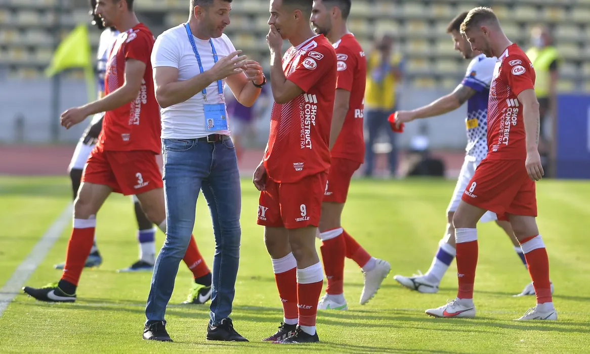 Laszlo Gyorgy Balint discuta cu Filip Dangubic in meciul de fotbal dintre FC Arges si UTA Arad, contand pentru Liga 1 Casa Pariurilor, desfasurat pe Stadionul Nicolae Dobrin din Pitesti, sambata 23 iulie 2021. © FOTO:Razvan Pasarica/SPORT PICTURES