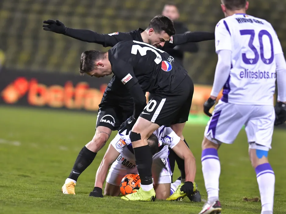 Razvan Toni Gradinaru, Cesar Daniel Meza Colli si Cosmin Gabriel Matei in meciul de fotbal dintre FC Arges si FC Viitorul Constanta, contand pentru Liga 1 Casa Pariurilor, desfasurat fara spectatori pe Stadionul Nicolae Dobrin din Pitesti, vineri 12 februarie 2021. © FOTO:Razvan Pasarica/SPORT PICTURES