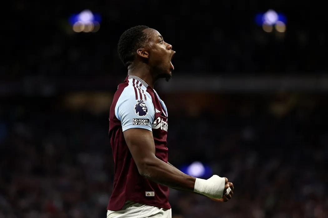 Aston Villa's Columbian striker #09 Jhon Duran reacts at the final whistle of the English Premier League football match between Aston Villa and Everton at Villa Park in Birmingham, central England on September 14, 2024.,Image: 907676182, License: Rights-managed, Restrictions: RESTRICTED TO EDITORIAL USE. No use with unauthorized audio, video, data, fixture lists, club/league logos or 'live' services. Online in-match use limited to 120 images. An additional 40 images may be used in extra time. No video emulation. Social media in-match use limited to 120 images. An additional 40 images may be used in extra time. No use in betting publications, games or single club/league/player publications., Model Release: no