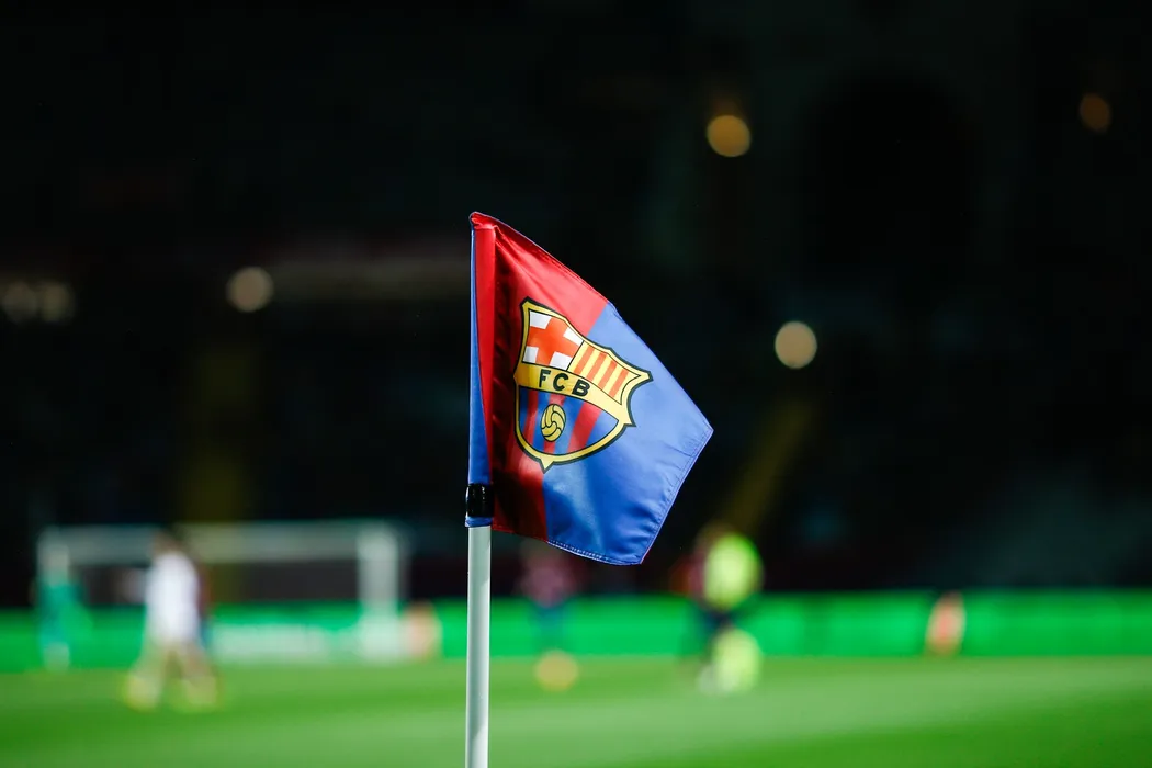 FC Barcelona corner flag during the La Liga EA Sports between FC Barcelona v Valencia CF at Estadi Olimpic Lluis Companys in Barcelona, Spain, on April 29th, 2024.
