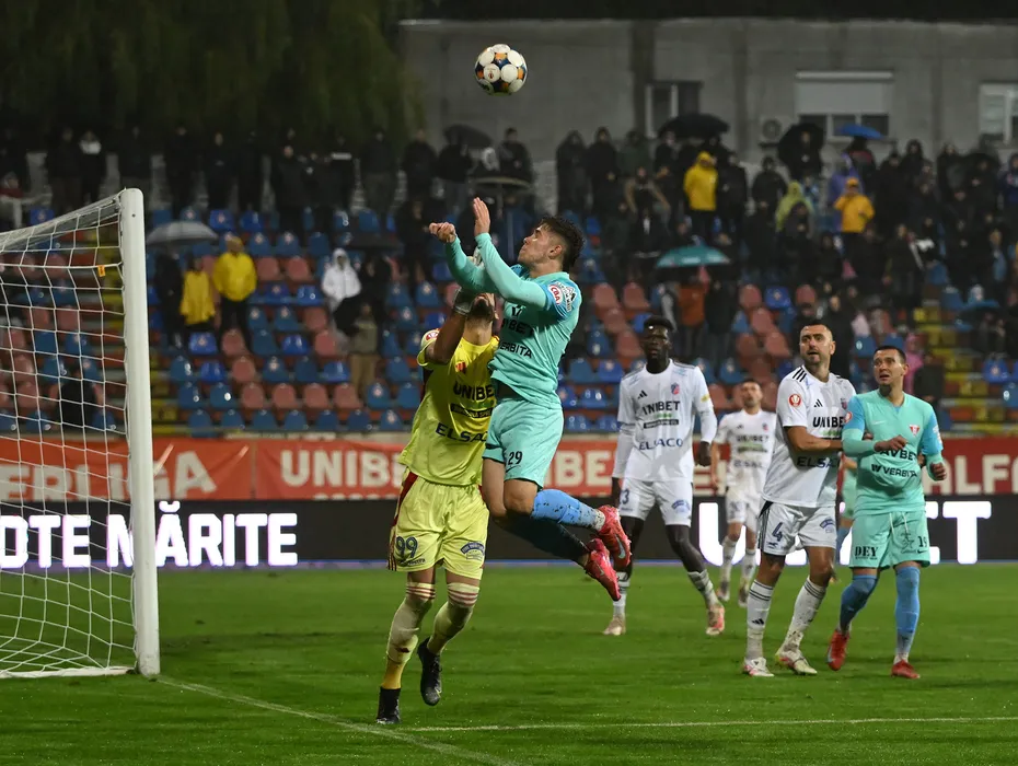 Laurentiu Constantin Vlasceanu, Valentin Ionut Costache si Andrei George Miron, Ioannis Anestis in meciul de fotbal dintre FC Botosani si UTA Arad, contand pentru Superliga Superbet, desfasurat pe Stadionul Municipal din Botosani, luni 6 octombrie 2025. © FOTO:Tudy/SPORT PICTURES