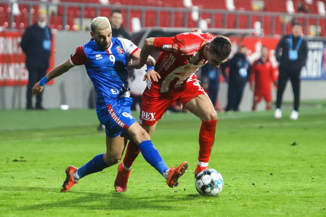 Mahmoud Al Mawas si Ionut Andrei Peteleu in meciul de fotbal dintre UTA Arad si FC Botosani, contand pentru Liga 1 Casa Pariurilor, desfasurat fara spectatori pe Stadionul Francisc Neuman din Arad, luni 22 februarie 2021. © FOTO:Ciprian Petcut/SPORT PICTURES
