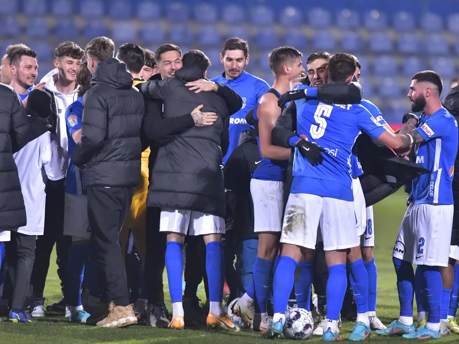 Bucurie a fotbalistilor constanteni Florin Flavius Purece, Nicolas Popescu, Gabriel Cristian Iancu, Dragos Ionut Nedelcu, Jefte Betancor Sanchez si Radu Stefanita Boboc dupa meciul de fotbal dintre Farul Constanta si FC Botosani, contand pentru Liga 1 Casa Pariurilor, desfasurat pe Stadionul central al Academiei Gheorghe Hagi din Ovidiu, joi 3 martie 2022. © FOTO:Razvan Pasarica/SPORT PICTURES