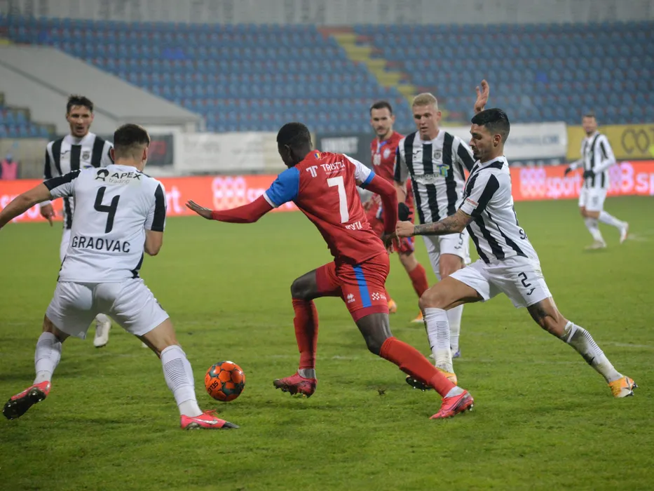 Hamidou Keita s Hugo Soussa i in meciul de fotbal dintre FC Botosani-Astra Giurgiu din etapa a XIII-a a Ligii 1, disputat pe stadionul Municipal din Botosani, vineri, 11 noiembrie 2020. © FOTO:Ionut Tabultoc/Sport Picture