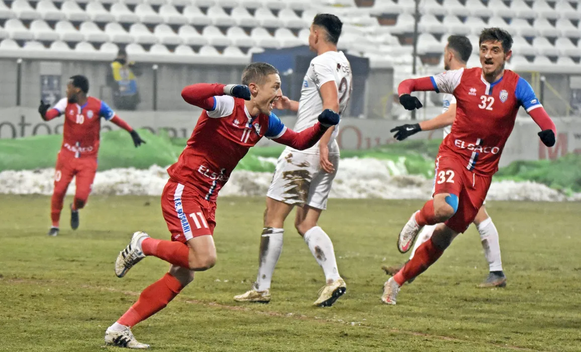 Mihai Roman, de la FC Botosani, reactioneaza dupa inscrierea unui gol in timpul meciului de fotbal contra echipei CFR Cluj din etapa a XXII-a a Ligii 1, disputat pe stadionul Municipal din Botosani, luni, 8 februarie 2021. DRAGOS PASCANEANU / MEDIAFAX FOTO