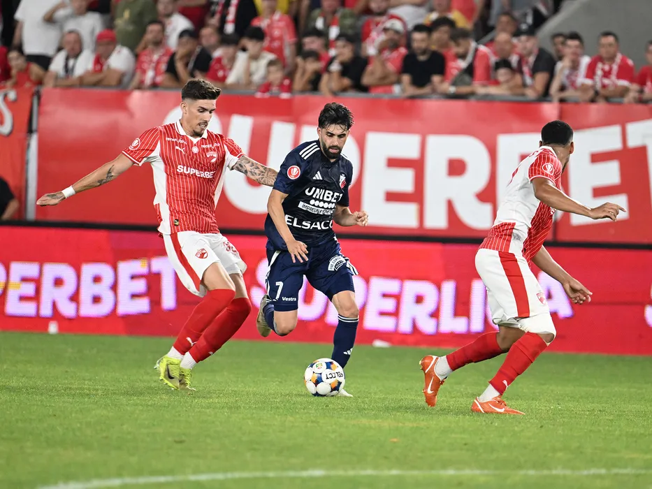 Iulius Andrei Marginean si Arpad Sebastian Mailat in meciul de fotbal dintre Dinamo Bucuresti si FC Botosani, din cadrul Superligii Superbet, desfasurat pe Stadionul National Arcul de Triumf din Bucuresti, luni 21 iulie 2025. © FOTO:Razvan Pasarica/SPORT PICTURES