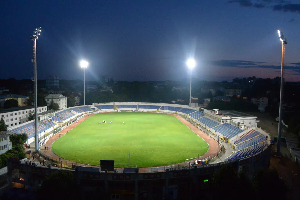 Nocturna de pe Stadionul Municipal din Botosani este aprins pentru prima data, vineri, 29 august 2014. IONUT TABULTOC / MEDIAFAX FOTO